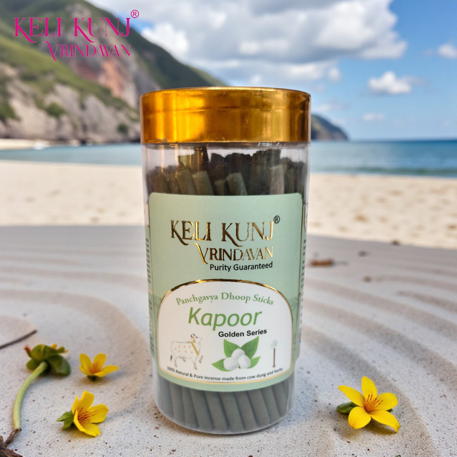 Kapoor Dhoop Sticks Panchgavya Keli Kunj are crafted in Vrindavan using a traditional Vedic process that combines pure cow dung, natural herbs, desi ghee, and premium camphor (kapoor). These dhoop sticks are completely chemical-free, charcoal-free and eco-friendly, making them ideal for purifying your home, temple, or workplace.